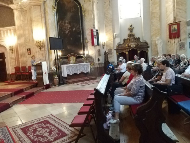 A bazilika melletti Lelkigyakorlatos házban elköltött ebéd után Venczel Tünde Emese irodavezető ismertette a kegyhely történetét. Az ismertető után Zsolt atya szentmisét celebrált, amelyben hálát adtunk Istennek, és kértük a Szűzanya közbenjárását egyházközségeink híveiért.