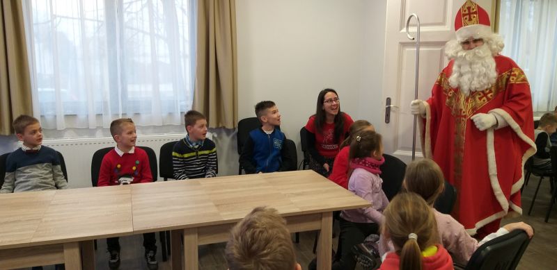 December 5-én délután vidám gyerekzsivaj töltötte meg a börcsi plébániát. Öt falu apraja-nagyja várta izgatottan Szent Miklós érkezését. Alig foglaltuk el helyünket a csoportokban, már jött is a hír: Itt van a kapuban! A kíváncsi gyerekszemek már az ablakokból lesték érkezését. Néhány pillanat múlva már teljes valójában köztünk volt a várva várt vendég, akit vidám köszöntéssel fogadtunk. Ezután játékos vetélkedés vette kezdetét. Tréfás-vicces és igaz állítások hangzottak el Szent Miklós életével kapcsolatban. Ezekből kellett az igazságot kihámozni, ami mindenkinek sikerült! Egy kis kézművességgel folytattuk a vidám délutánt. Sok-sok piros ruhás Mikulást színeztek a gyerekek. A játék után egy kis sütemény, üdítő várta őket.