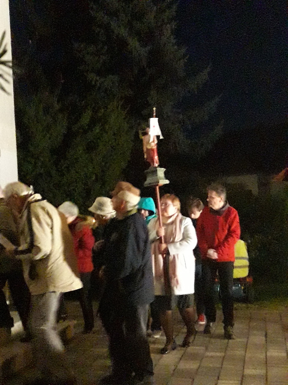 A feltámadási körmenet résztvevői ugyan csak a templom körül vonultak, követve a feltámadt Krisztus szobrát és a ministránsok, valamint lámpástartók által kísért Oltáriszentséget, de így is, ez a rövid út is magasztos, lélekemelően szép volt. A húsvéti énekeken kívül felhangzott a Te Deum, majd a templomba visszaérkezve a Tantum Ergo. Ünnepi lélekkel fogadtuk az áldást.